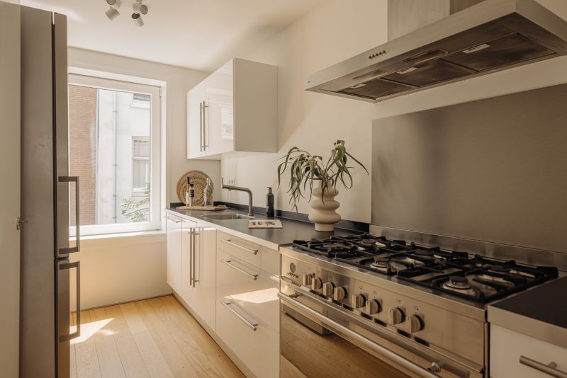 De keuken is voorzien van een robuust 6-pits gasfornuis en een vaatwasser – ideaal voor de thuiskok. Vanuit de centrale hal zijn alle vertrekken bereikbaar: een apart toilet met fonteintje, de royale hoofdslaapkamer aan de achterzijde met Frans balkon, een tweede ruime slaapkamer aan de voorzijde én de comfortabele badkamer met zowel een ligbad als aparte douche, wastafel en aansluitingen voor wasmachine en droger.