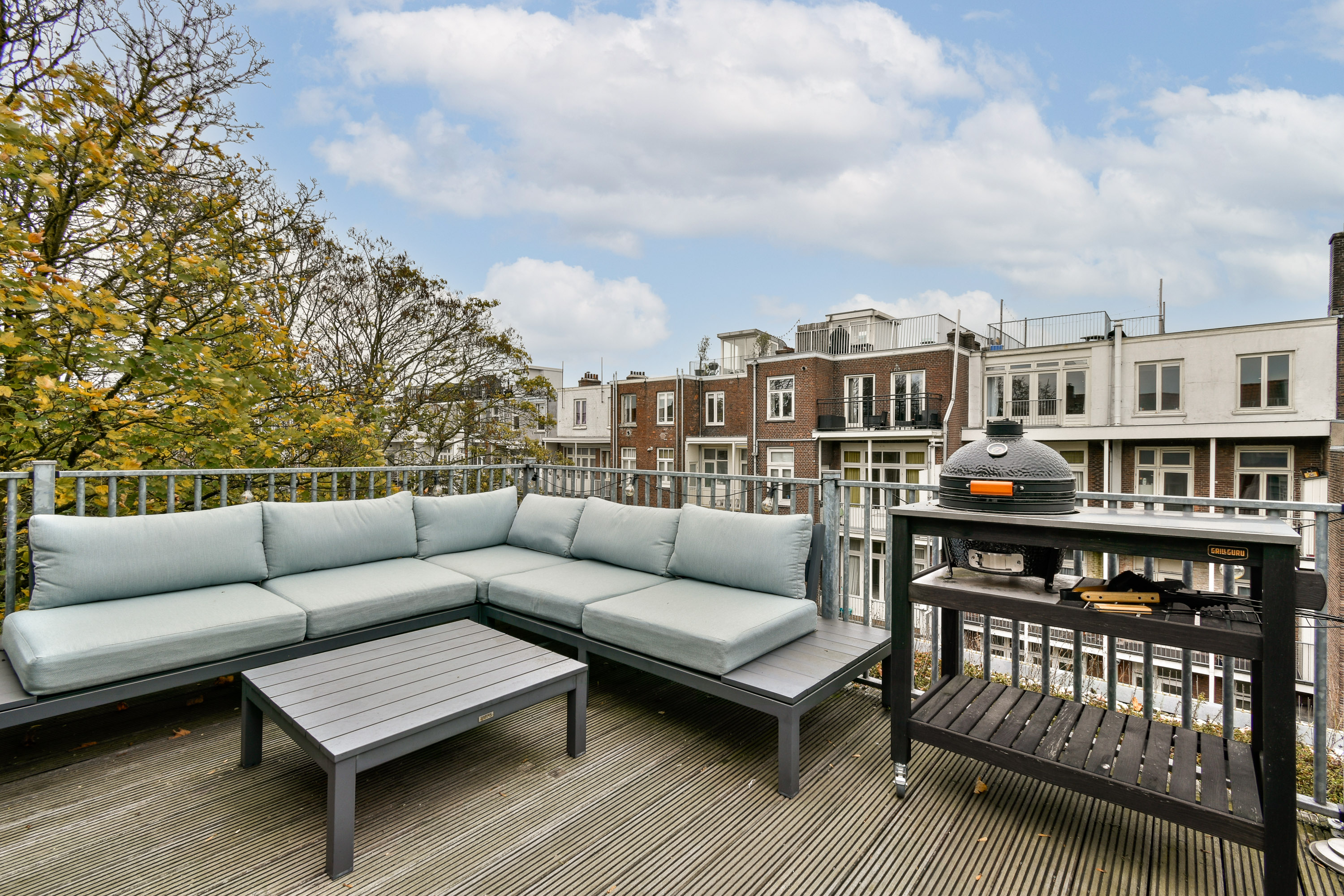 Bright and well laid-out apartment on the second floor with an attic room and a spacious private roof terrace on the fourth floor, totaling 67 m², located on freehold land in the popular Baarsjes neighborhood.