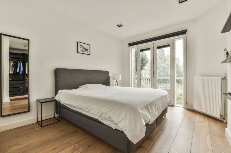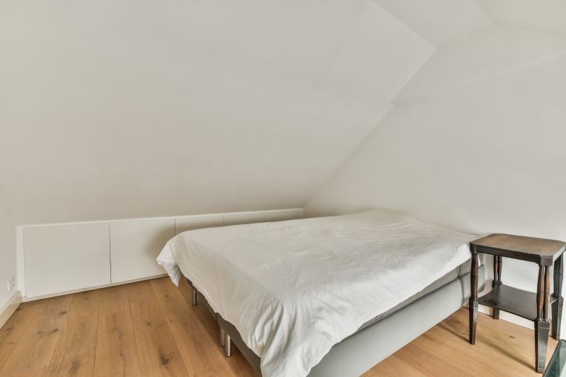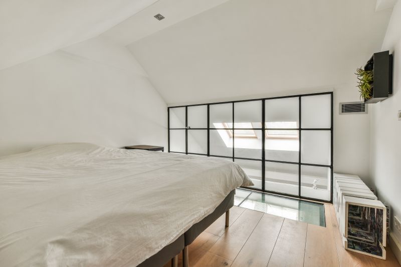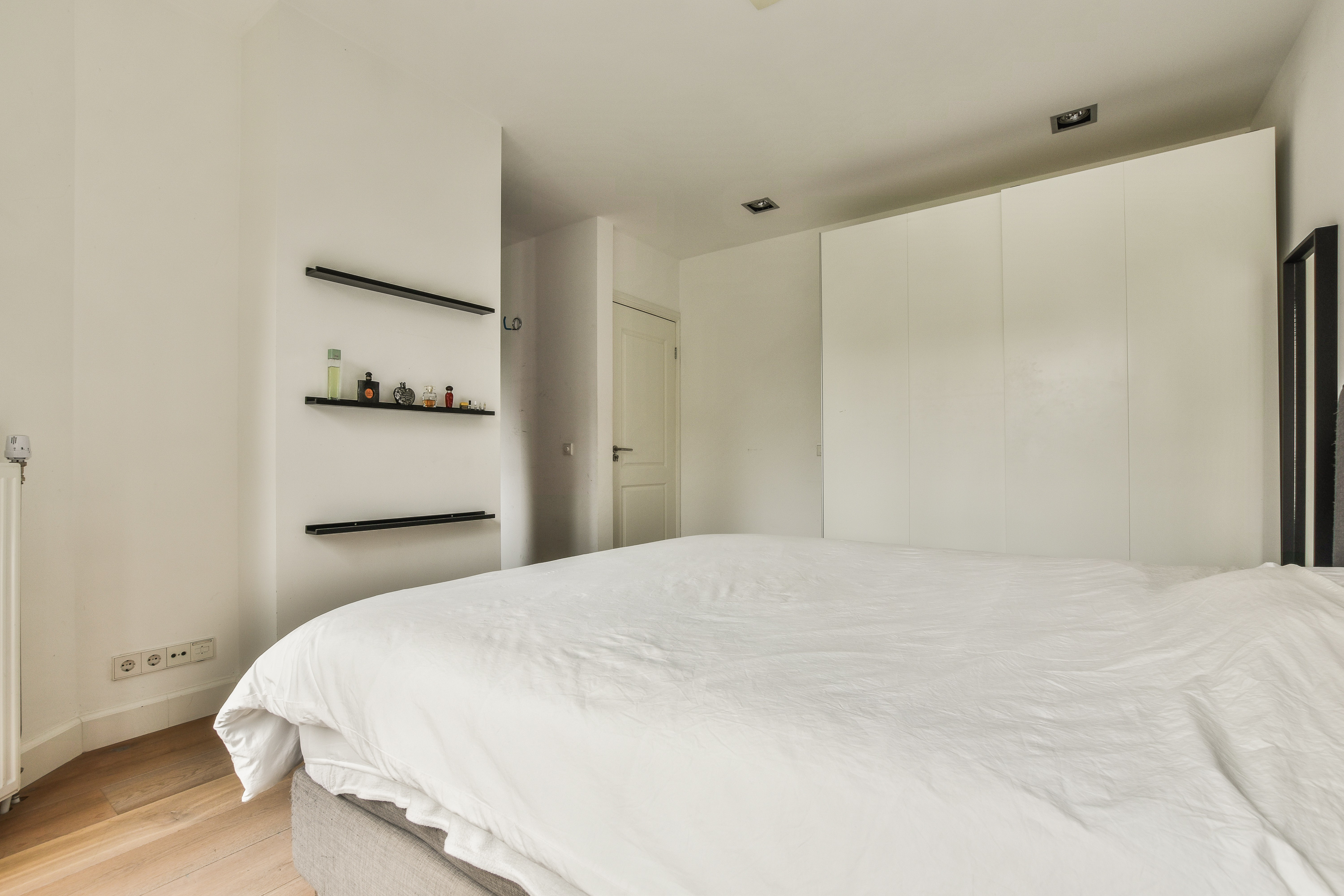 Op de derde en tevens de bovenste verdieping bevindt zich nog een riante slaapkamer. De glazen wand in de ruimte zorgt voor veel daglicht en geeft een ruimtelijke industriële uitstraling.