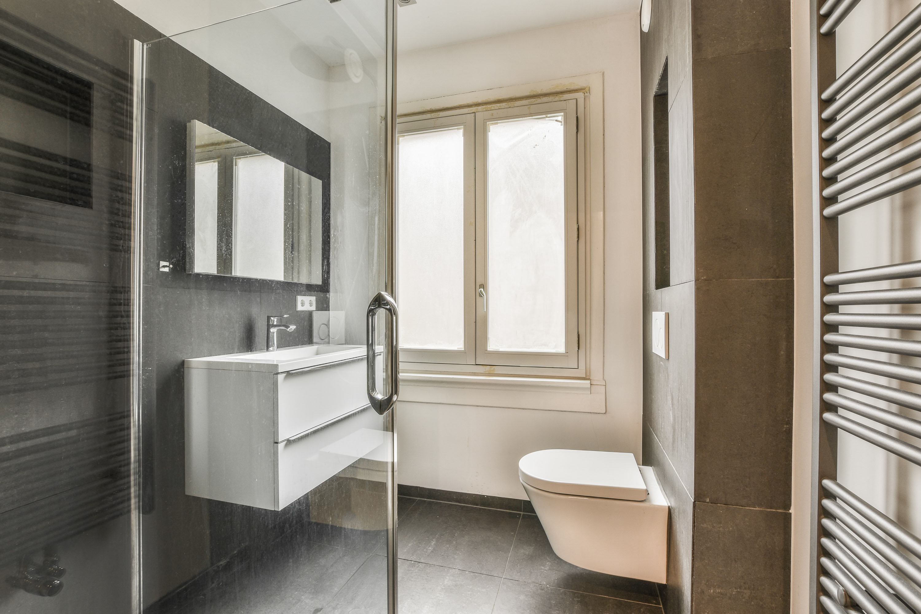 Private entrance from the ground floor. First-floor hallway with a coat closet and additional storage space. The hallway provides access to the master bedroom, which features a spacious walk-in closet and also provides access to the sunny balcony. The first bathroom is also located on this floor, featuring a walk-in shower, toilet, and modern vanity.