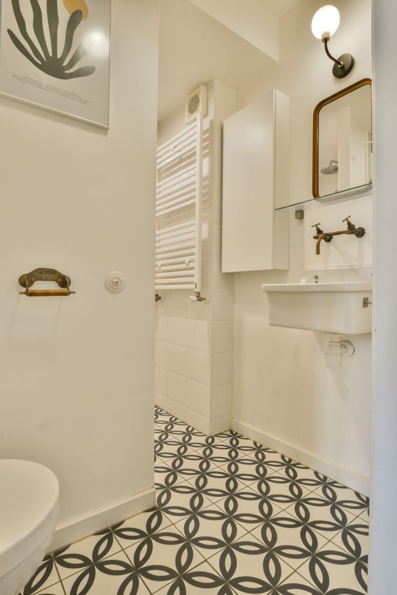 The neat communal staircase leads to the entrance of this lovely apartment on the second floor. The apartment is actually divided into three sections. At the front is the spacious bedroom with a built-in wardrobe and a French balcony, which can be closed off with beautiful black steel doors. In the middle is the cozy living room, with black steel doors on one side and an authentic ensuite wardrobe on the other. At the rear is the dining room with a lovely balcony (overlooking a green courtyard) and an open-plan kitchen. The kitchen is equipped with a refrigerator, 4-burner gas stove, sink, dishwasher, oven, and washing machine connections. The bathroom is also located at the rear, with a walk-in shower, toilet, and vanity.