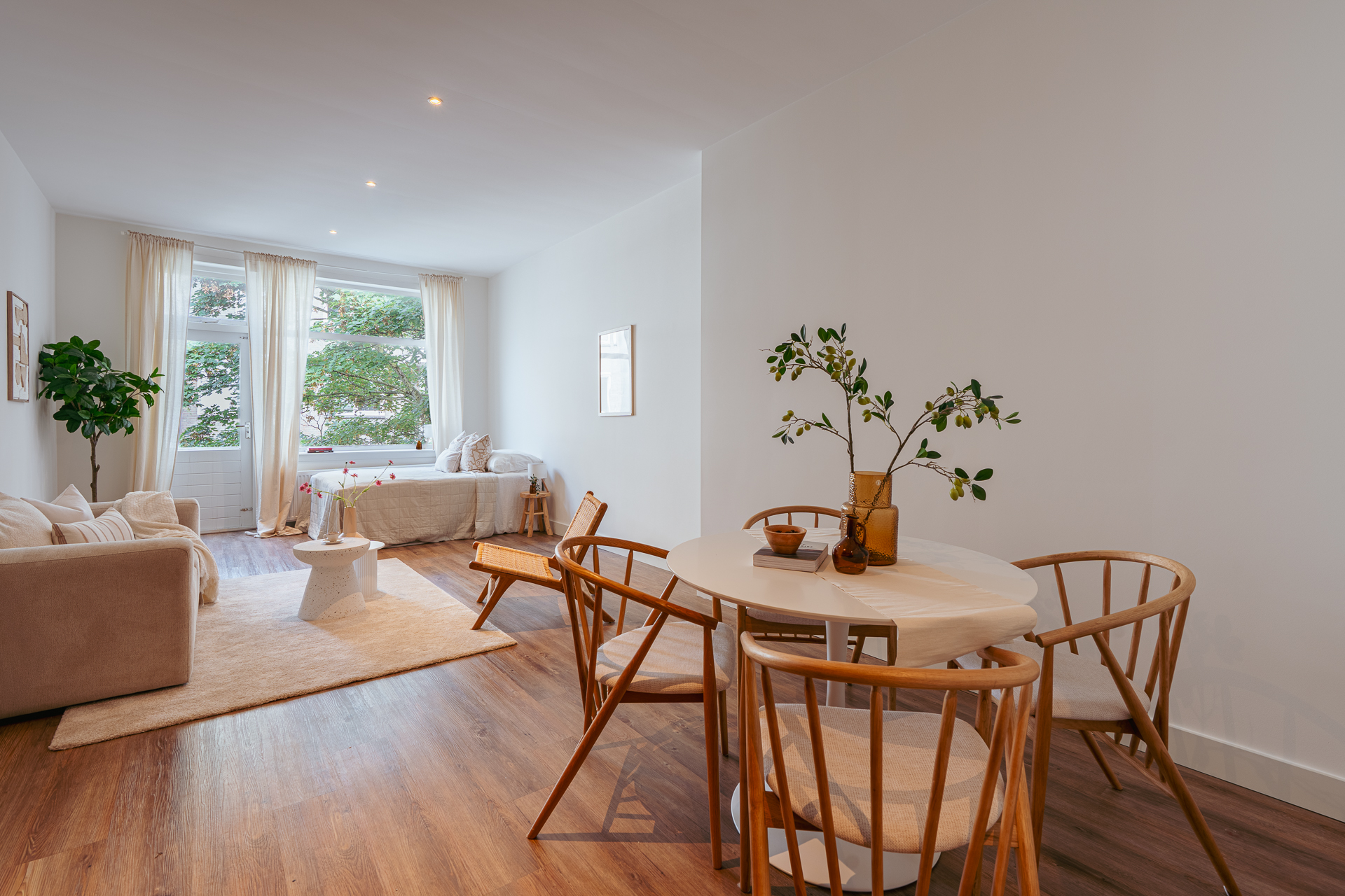Bright apartment of over 38 m² with a balcony on the second floor in the vibrant Jordaan district. The beautiful ceiling height and large windows enhance the feeling of spaciousness. The apartment is situated on freehold land at the quiet rear of the building. There is also a fantastic communal roof terrace.