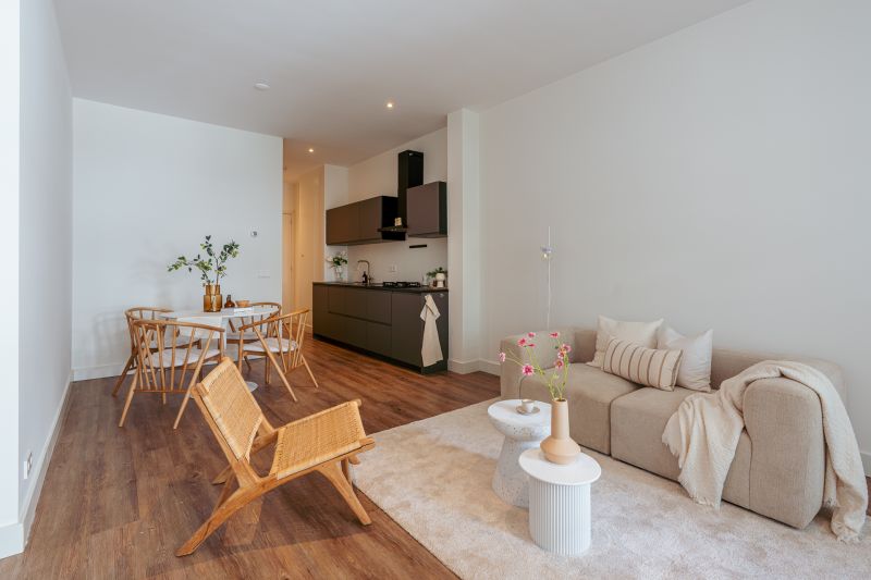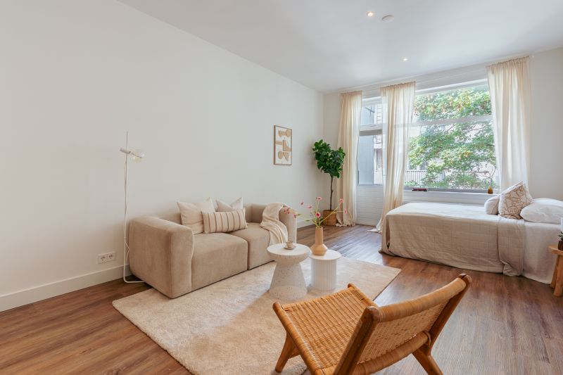 - Op dit moment ingedeeld als studio appartement, maar er kan gemakkelijk een aparte slaapkamer gecreëerd worden