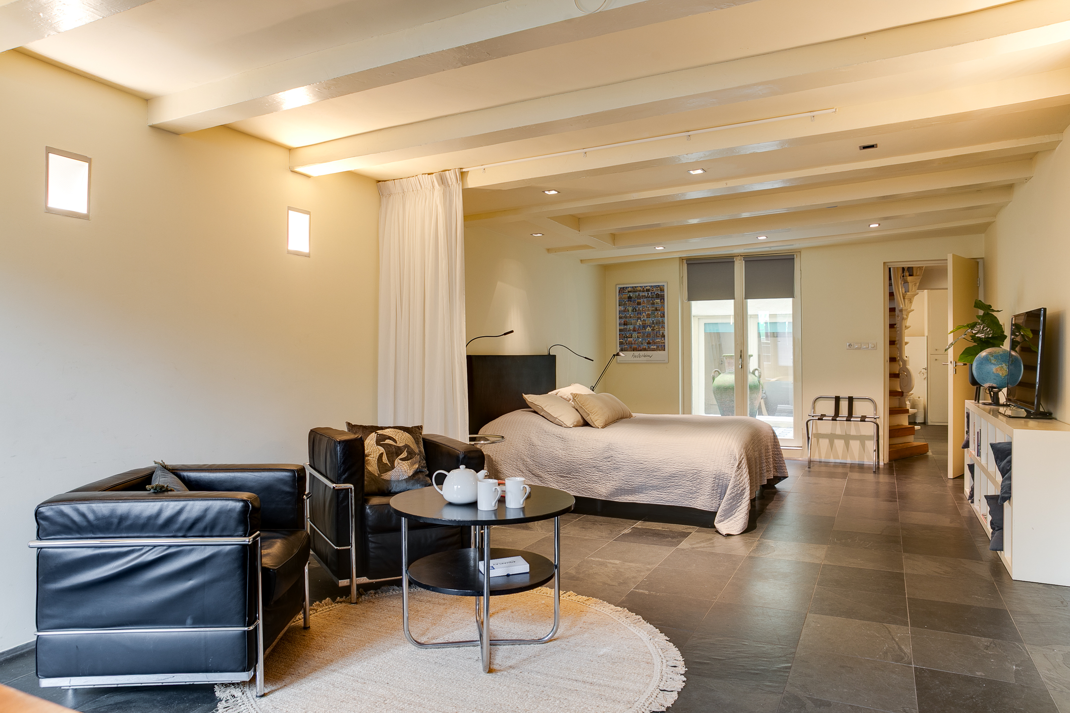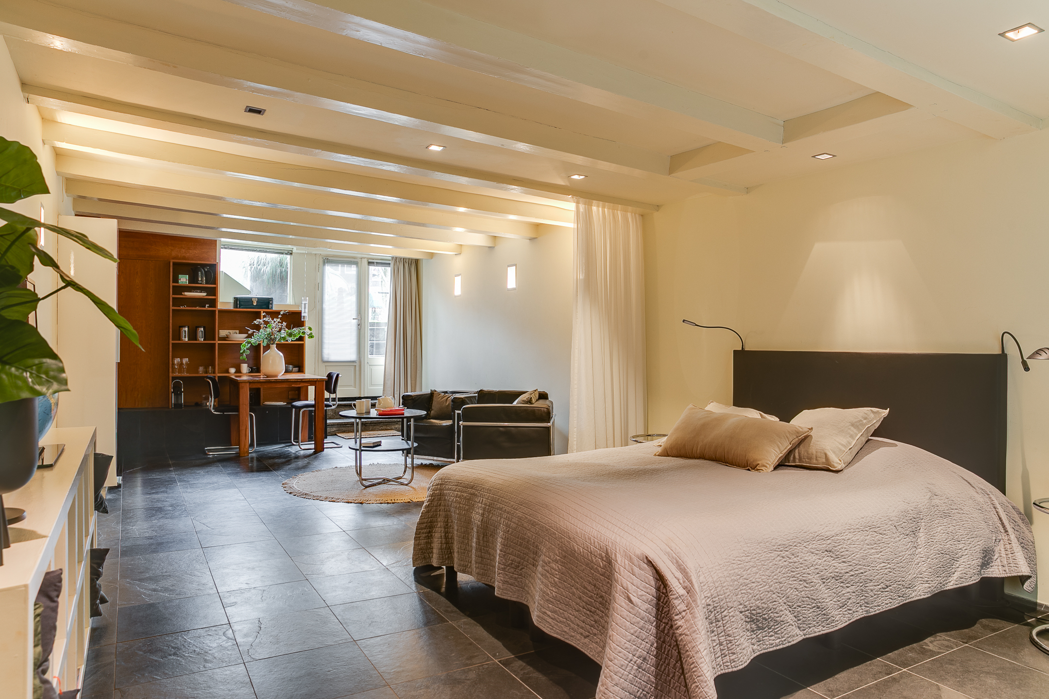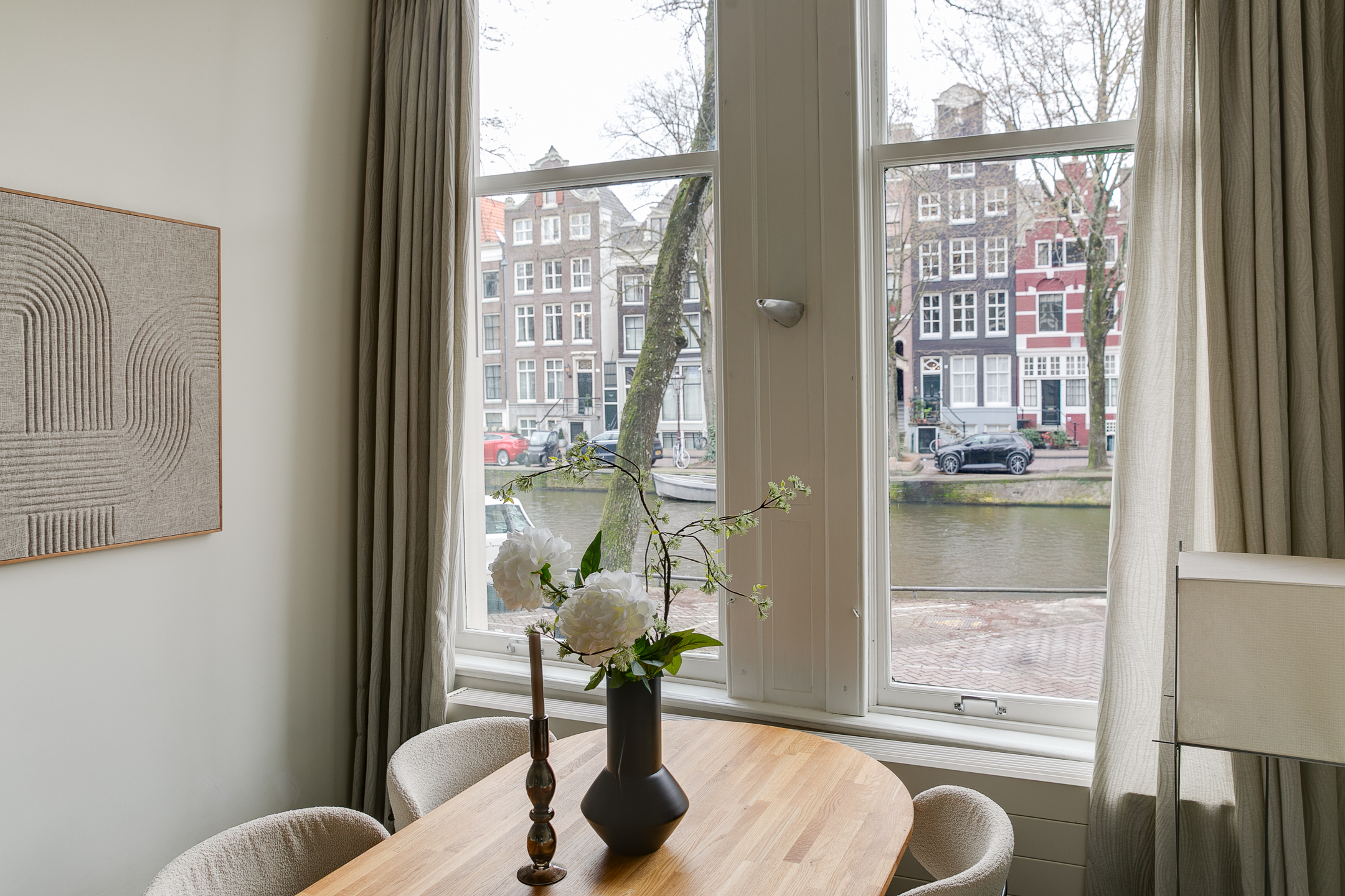 Located between the Huidenstraat and the Wolvenstraat with their many popular and authentic shops and eateries. Also within walking distance you will find the popular Jordaan, the Dam and the Spui. By bike you can easily reach the Central Station within ten minutes.