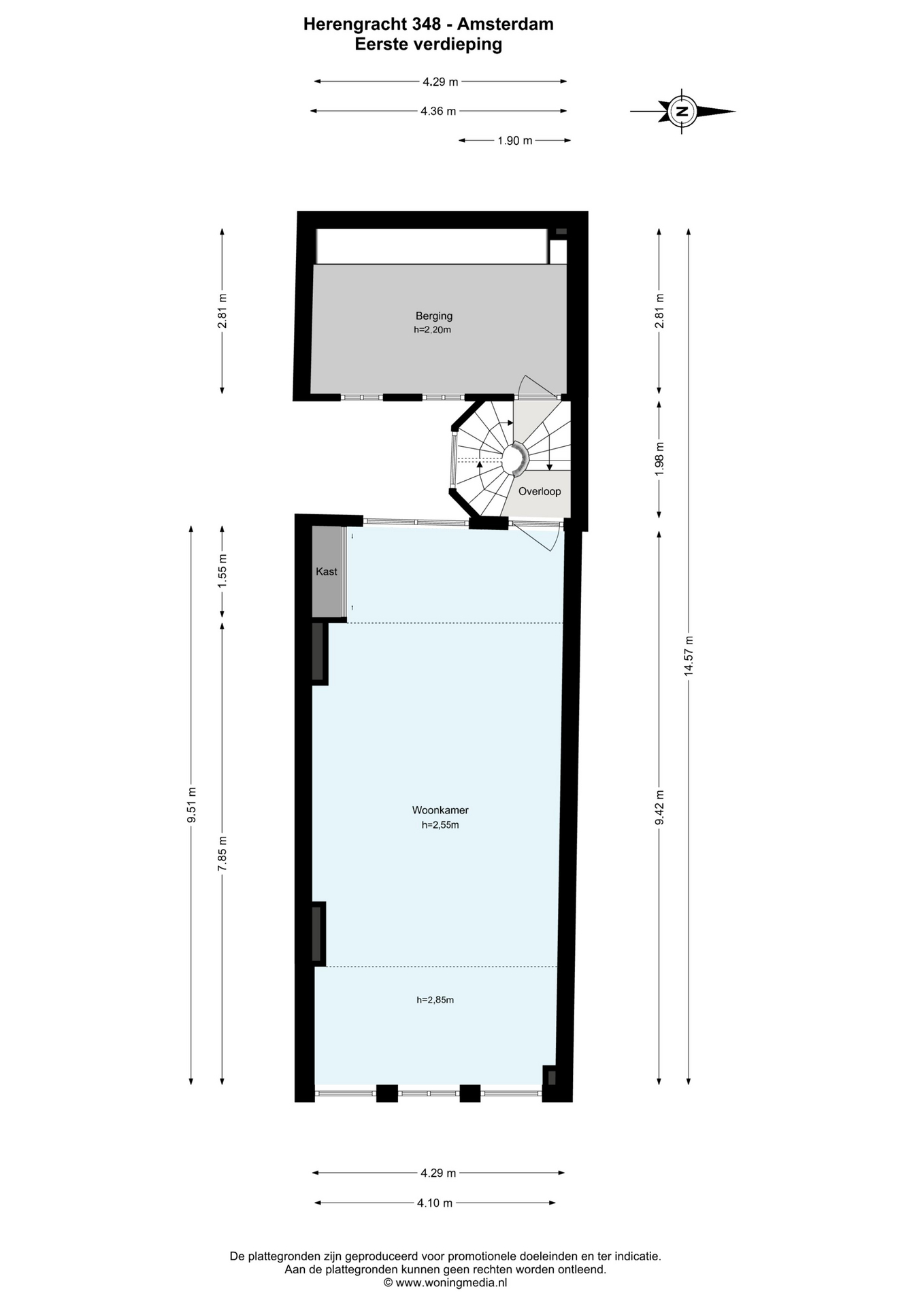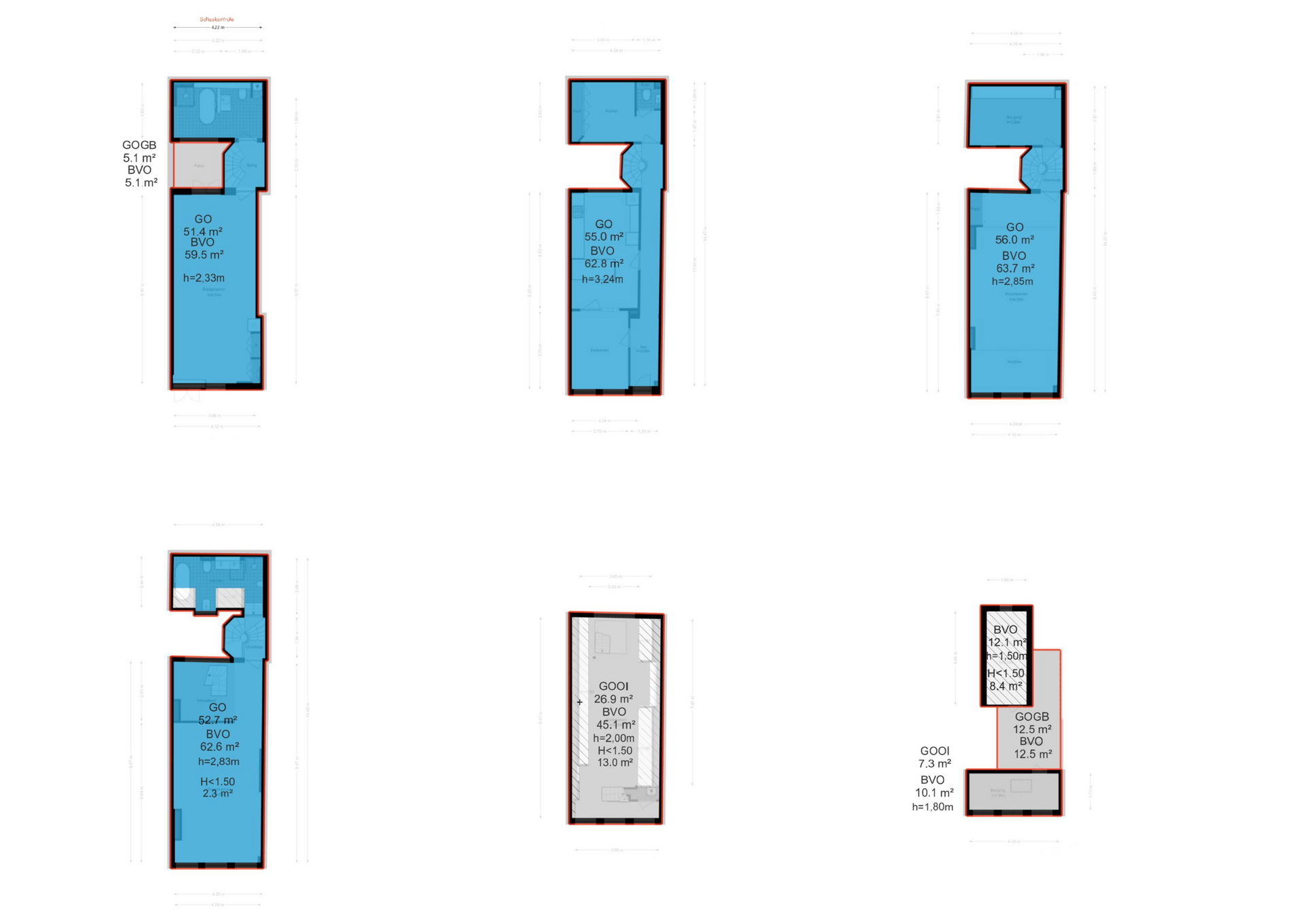 Geheel grachtenpand van 242 m2 (inclusief 26,9 m2 overige inpandige ruimte op de derde verdieping, waar de plafondhoogte 2.00m is, en onder de balken 1.89m)