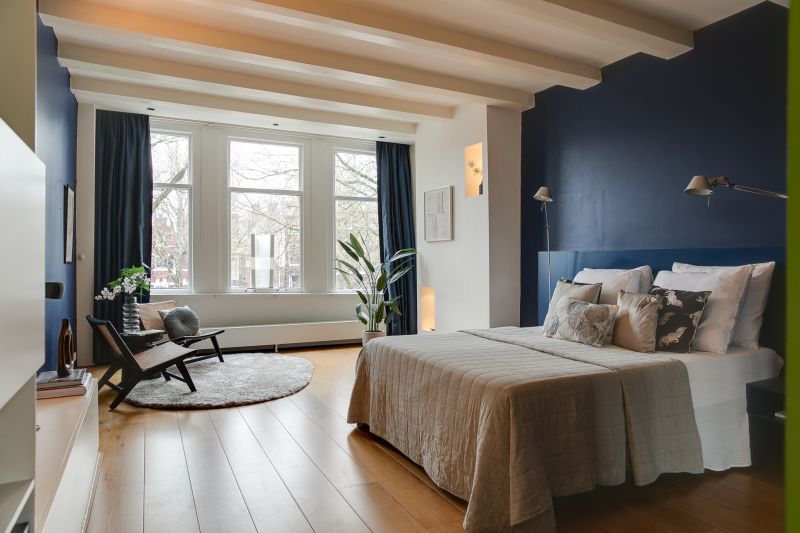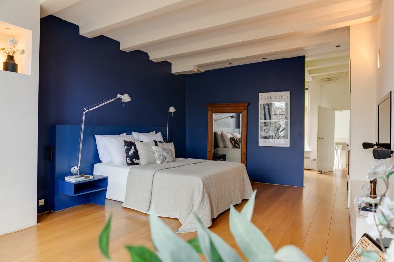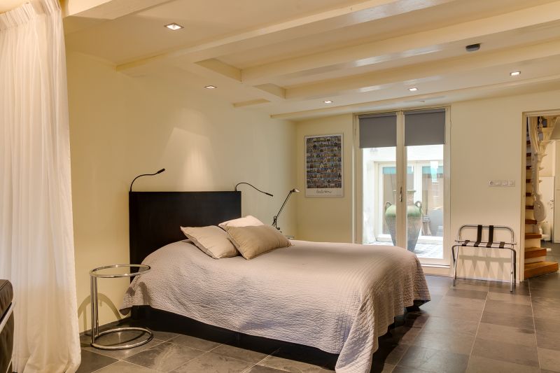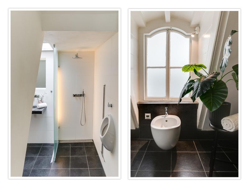 Riante slaapkamer aan de voorzijde en een ruime inloopkast. De badkamer in het achterhuis is voorzien van een ligbad, inloopdouche, dubbele wastafel, WC, urinoir en bidet.