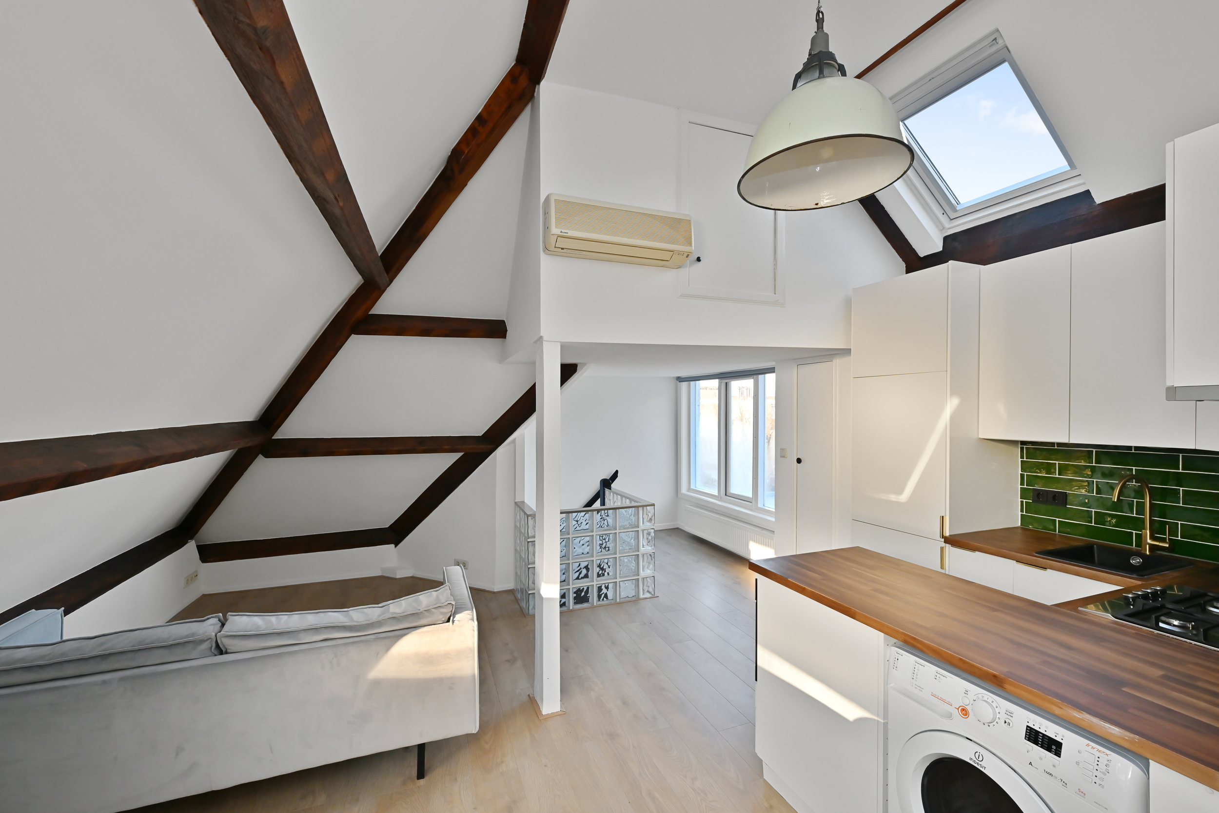 Charming 2-room apartment of approximately 40 m² located on freehold land overlooking the beautiful Erasmus Park. Situated on the top floor (so no upstairs neighbors), the apartment stands out thanks to its high beamed ceiling, corner location, and numerous windows. A unique combination of space, tranquility, and ambiance.