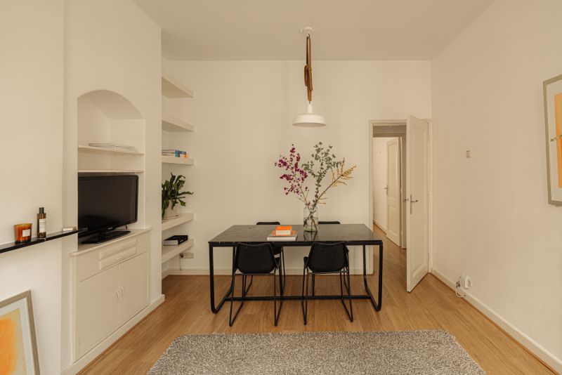 In the rear section of the building you will find the remaining facilities: a bathroom with shower and toilet, renewed in 2021, followed by the kitchen at the back. The kitchen overlooks the inner courtyard and is fitted with standard appliances. This is also where the new central heating boiler (installed in 2025) is located.