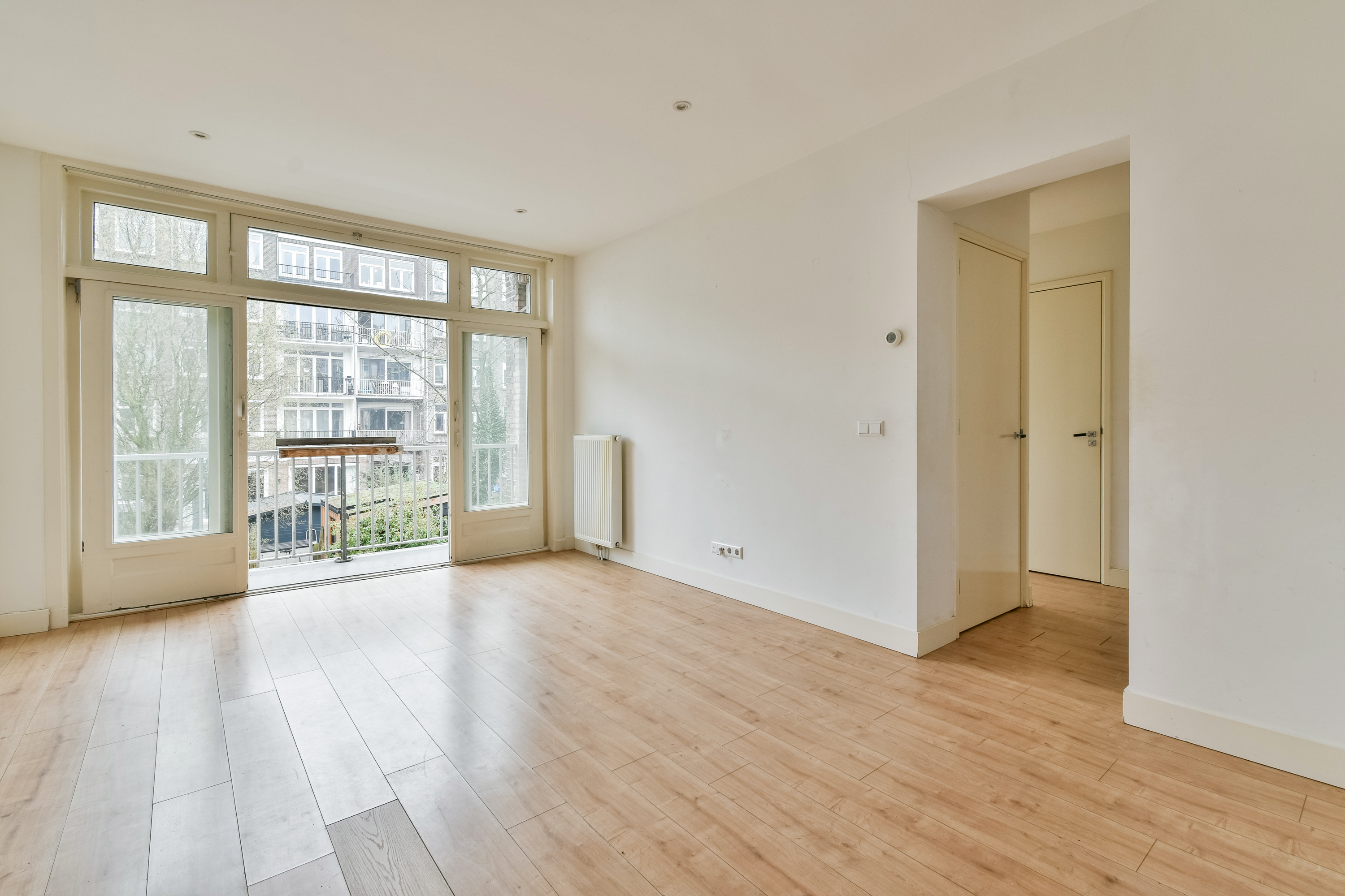 Bright and well-laid-out 4-room apartment of 74 m² on the first floor, situated on freehold land in a stately building in De Baarsjes. The apartment features a spacious living room with an open-plan kitchen, an adjoining balcony, three bedrooms, and a bay window. The wide building, with its many windows and bay window, ensures beautiful natural light and a particularly spacious feel.