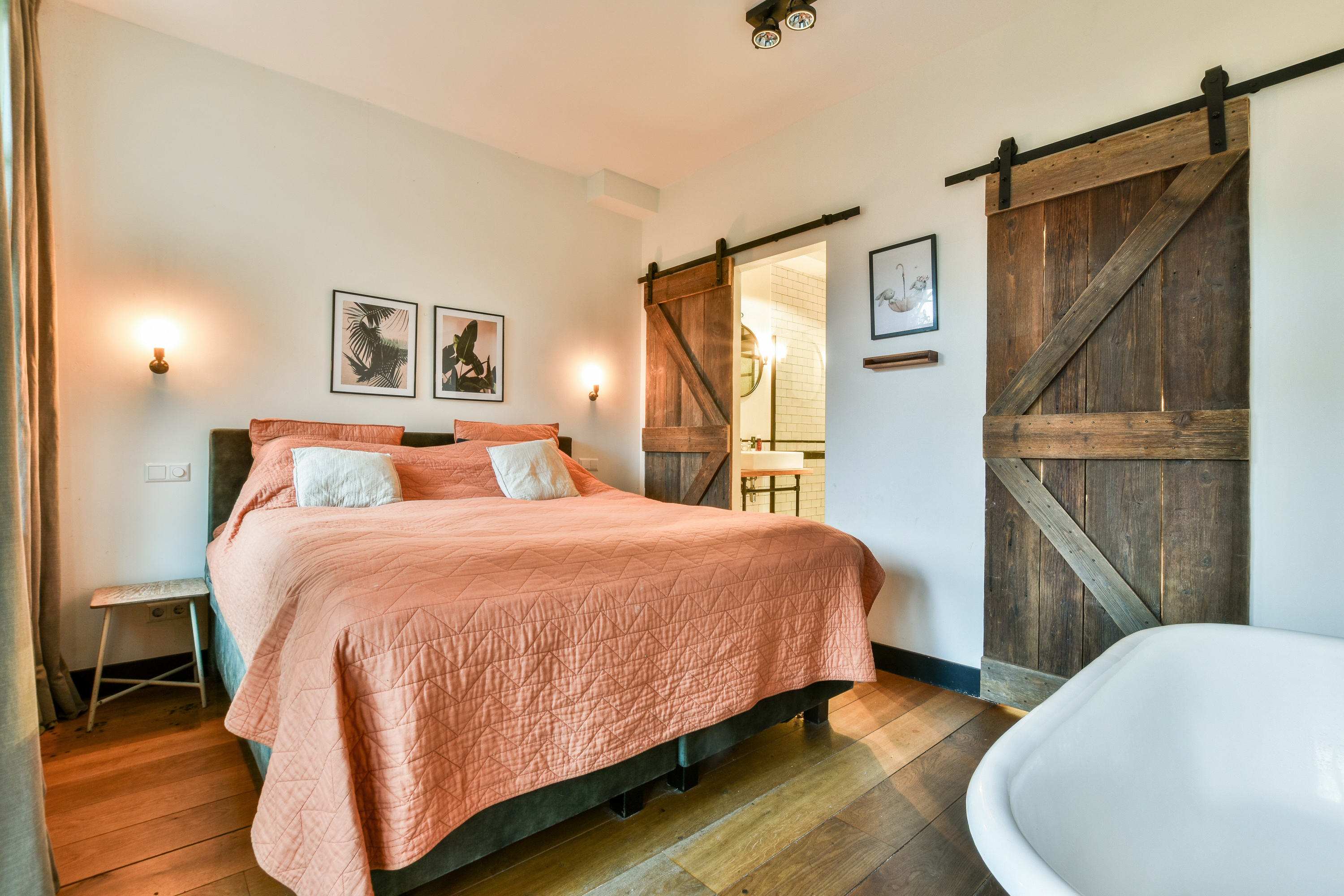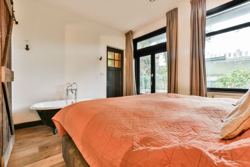Vanuit de keuken kom je middels een authentieke en-suite in de sfeervolle woonkamer, die is voorzien van openslaande deuren naar de zeer ruime tuin. Aan de achterzijde van de woning bevindt zich de tweede slaapkamer. Deze royale slaapkamer beschikt over een inloopkast en een losstaand bad, wat zorgt voor een echte hotel chique uitstraling. Vanuit de slaapkamer is tevens de badkamer bereikbaar. De badkamer is uitgerust met een inloopdouche, een wastafel en aansluitingen voor wasmachine en droger. Daarnaast is de badkamer ook vanuit de hal toegankelijk.