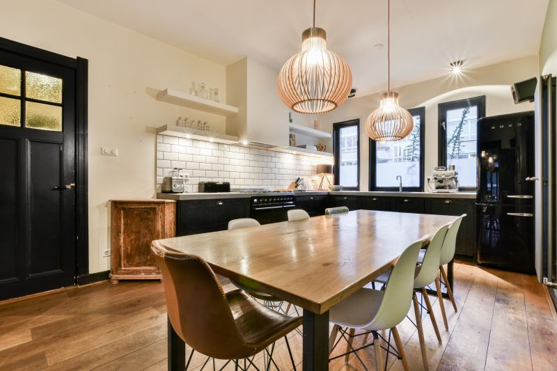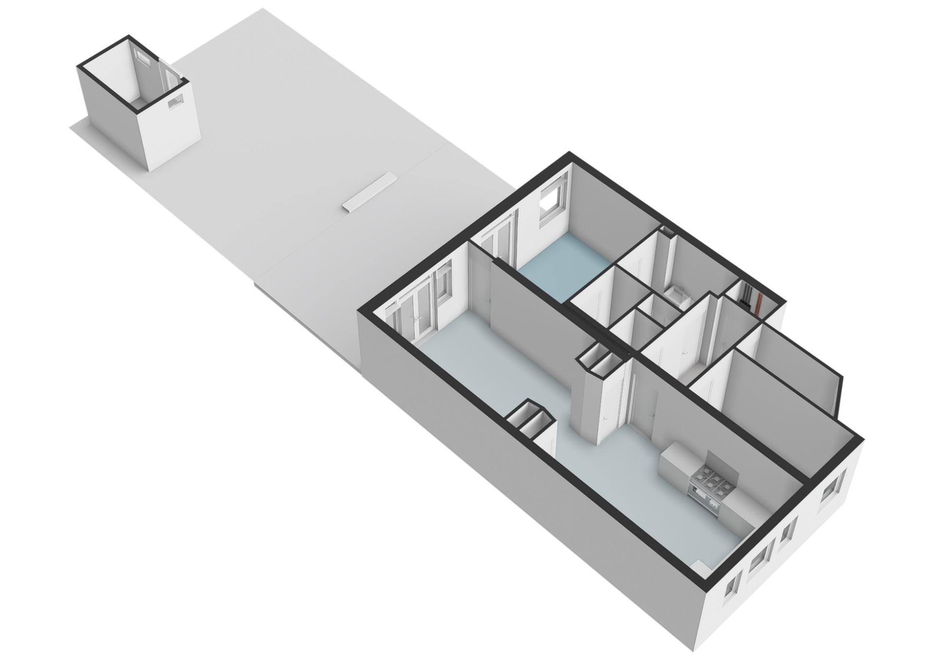 Through the private front door, you enter the hall via a vestibule. All rooms are accessible from here. There is a separate toilet and a small bedroom at the front. The attractive kitchen is also located at the front. The spacious kitchen-diner is equipped with a dishwasher, a 6-burner gas stove with two ovens, a sink, a separate refrigerator-freezer (SMEG), and a Quooker.