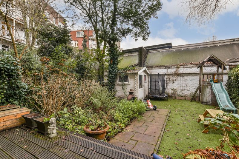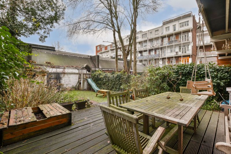 The absolute gem of this house is the garden. It is accessible through French doors from both the living room and the bedroom. The garden begins with a wooden decking terrace of approximately 35 m² and extends into a second garden area of ??approximately 60 m². In total, the house has a spacious garden of approximately 95 m².
