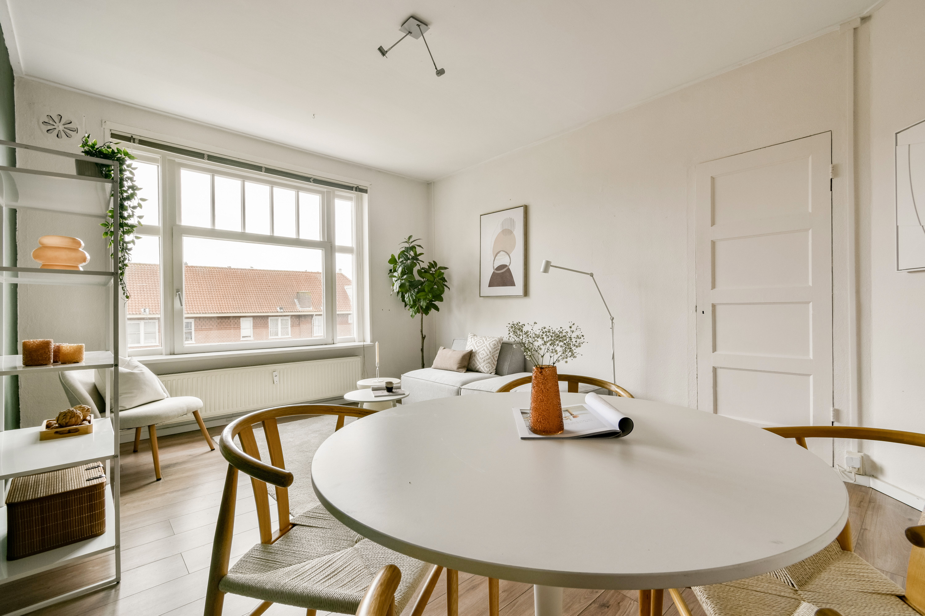 Bright and practically laid-out 3-room apartment of 47 m² with a sunny balcony, located on the third (and top) floor in lively Amsterdam East, near Beukenplein and Oosterpark. The monumental ‘Krugerhof’ building features a beautiful park-like courtyard. Additionally, there is a private storage unit in the basement with covered bicycle parking.