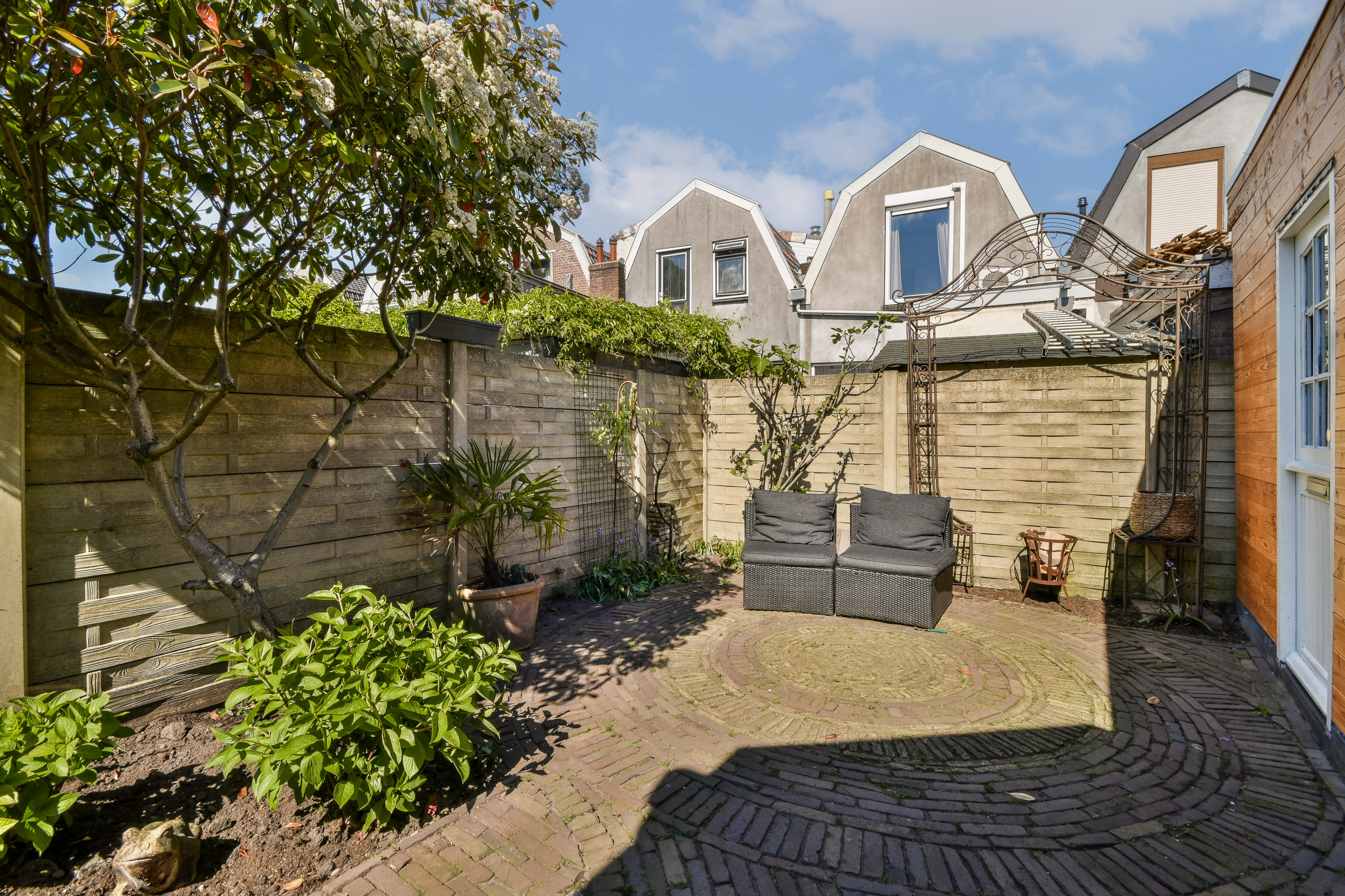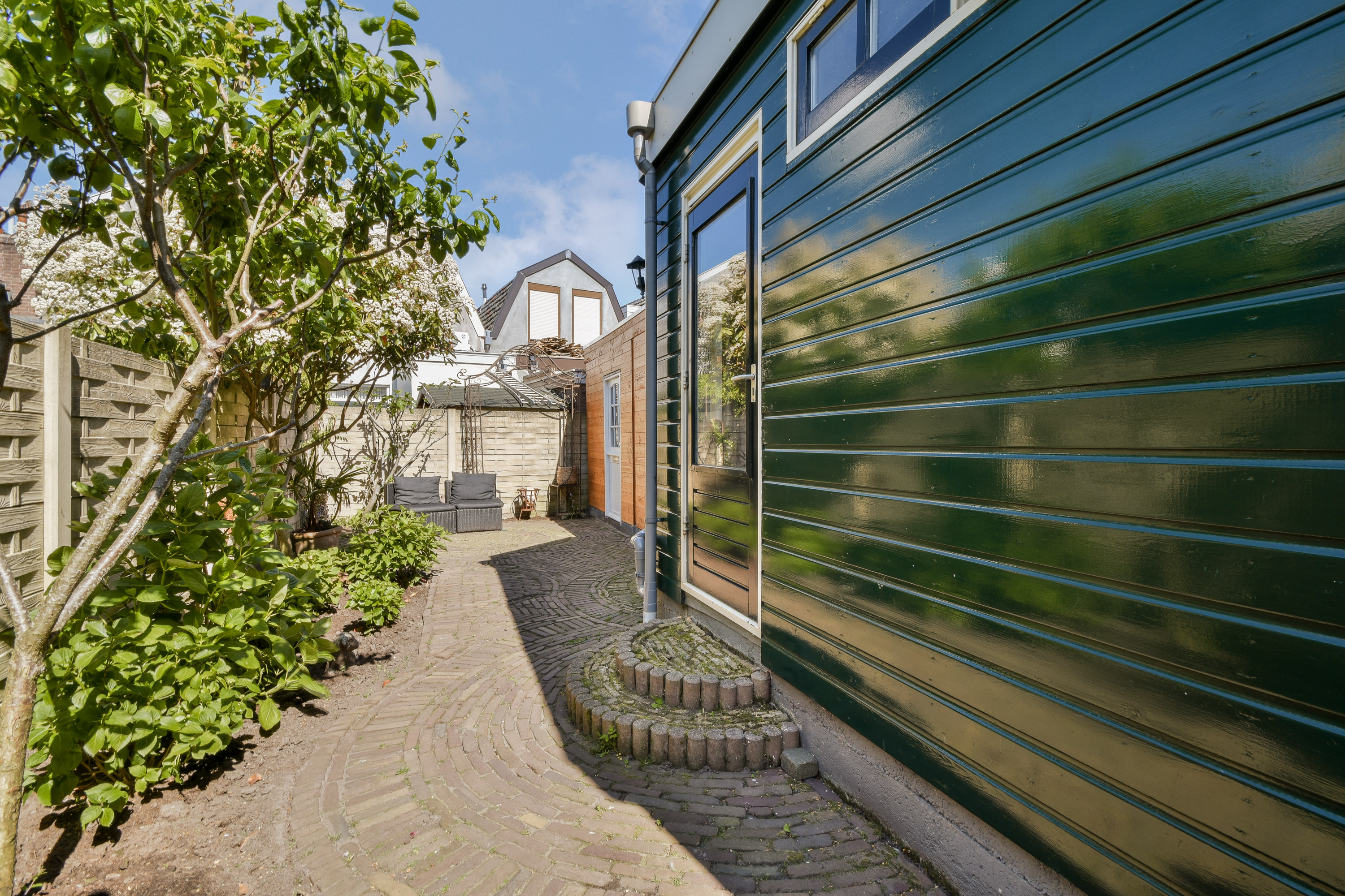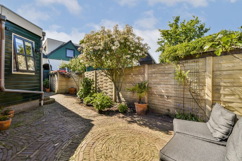 De achtertuin van circa 43 m² is gelegen op het zonnige zuidwesten, waar je vanaf de middag tot laat in de avond van de zon kunt genieten. De tuin is verzorgd aangelegd. Achterin staat een ruime, houten schuur met aansluitingen voor wasmachine en droger. De tuin is tevens bereikbaar via een steeg; ideaal voor fietsen of tuinbenodigdheden.