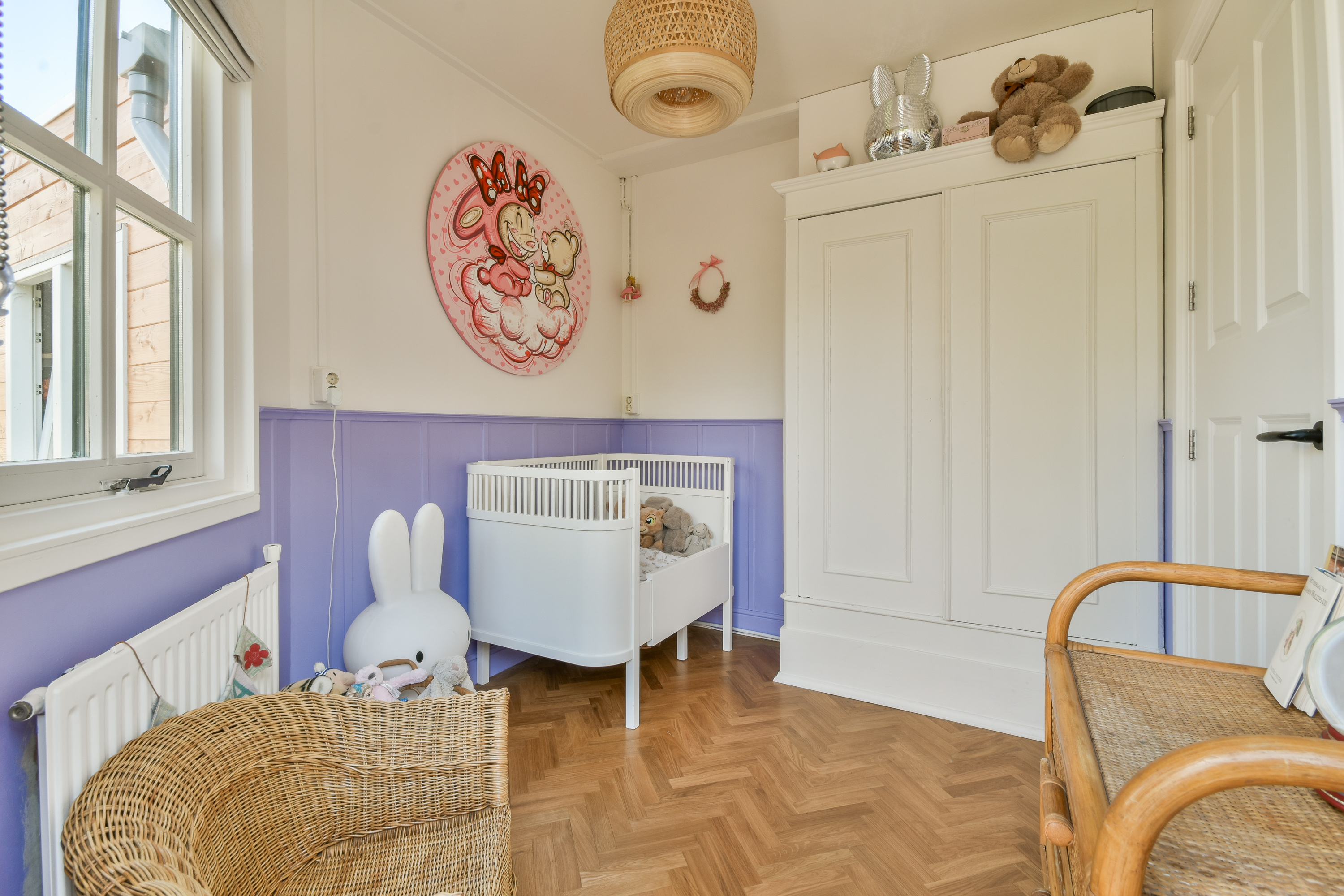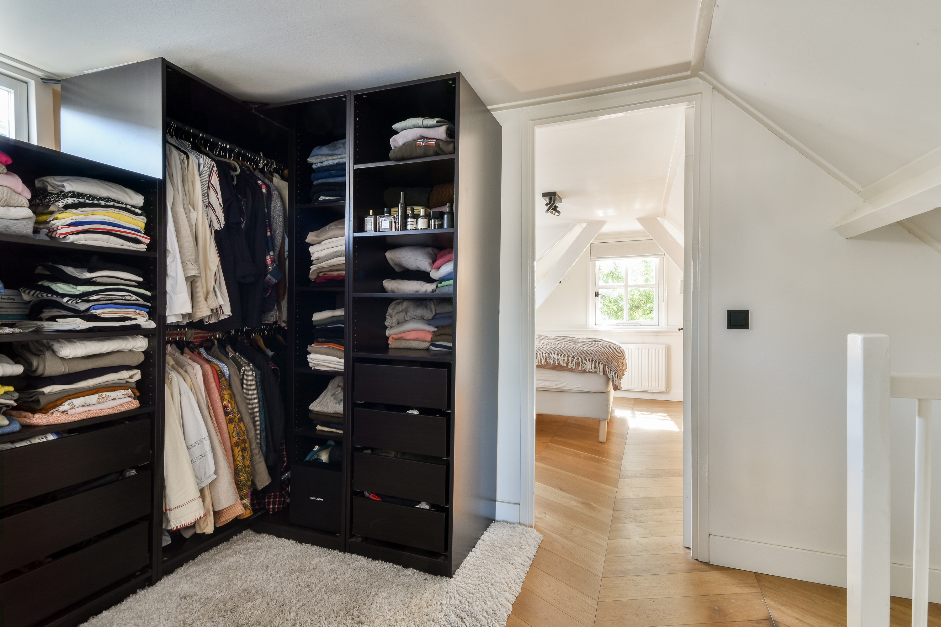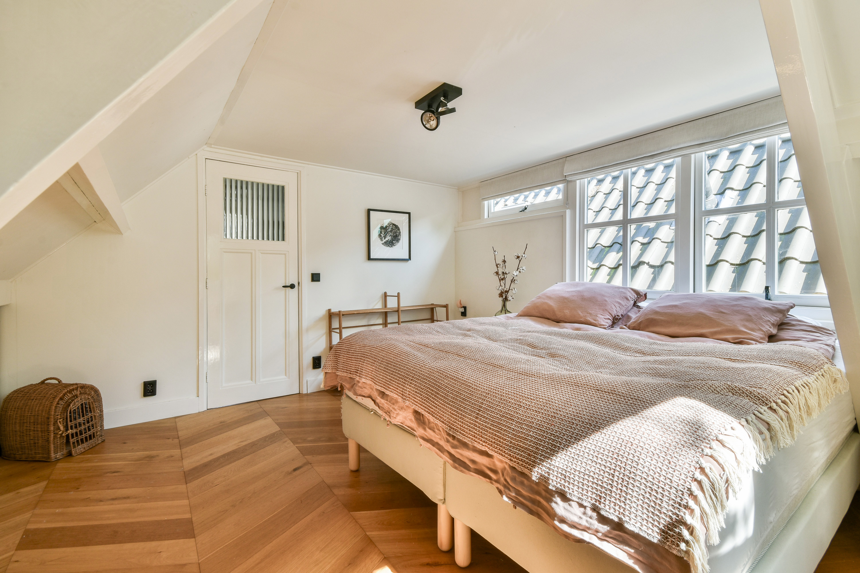 Op de eerste verdieping bevinden zich twee goed ingedeelde slaapkamers, beide voorzien van een dakkapel en praktische bergruimte onder de schuine kap. De kamer aan de voorzijde biedt schitterend zicht op het water, terwijl de overloop, thans in gebruik als inloopkast, ook uitstekend dienst kan doen als werkplek. Aan de achterzijde bevind zich nog een slaapkamer met uitzicht op de tuin