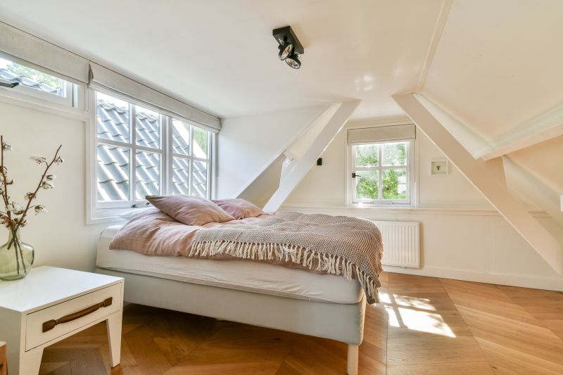 The first floor offers two well-designed bedrooms, both with dormer windows and practical storage under the sloped ceiling. The front bedroom boasts stunning water views, while the landing—currently used as a walk-in closet—could also serve as an ideal workspace. A third bedroom is located at the rear, overlooking the garden.
