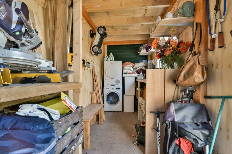 The backyard, approximately 43 m², faces the sunny southwest, allowing for afternoon and evening sun. The garden is well maintained and features a spacious wooden shed with connections for a washing machine and dryer. The garden is also accessible via a back alley. Ideal for bikes or gardening tools.