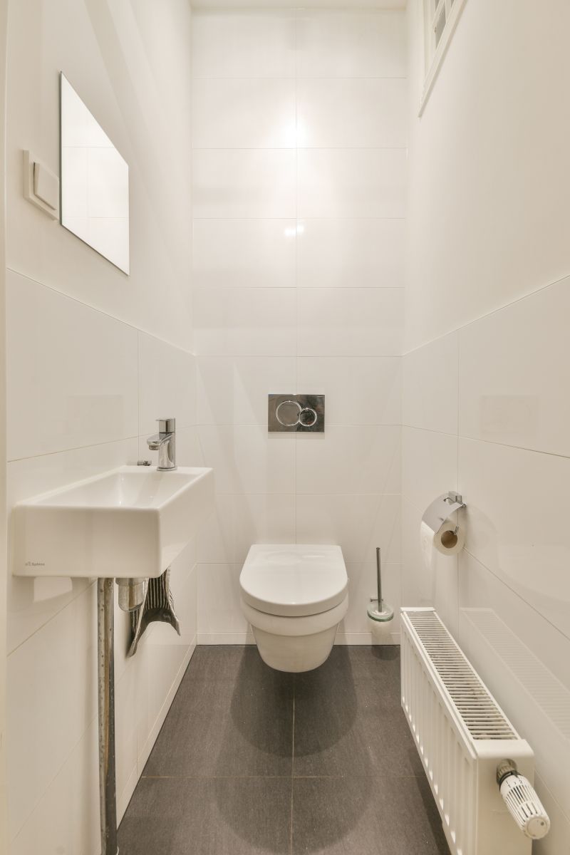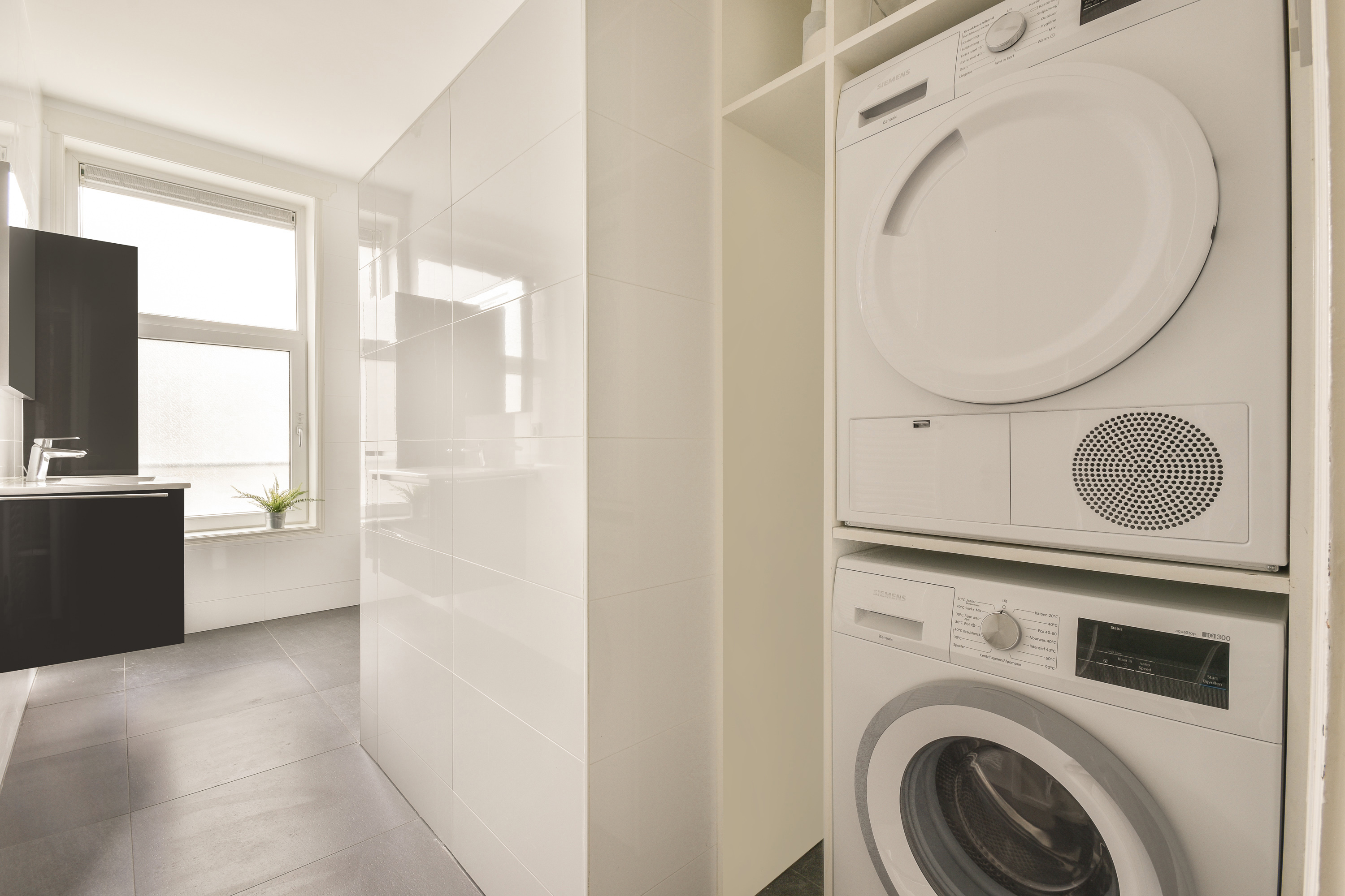The two bedrooms are both of a good size and enjoy pleasant natural light. The modern bathroom is tastefully finished and features a walk-in shower, a spacious vanity unit, and a designer radiator. There is also room for both a washing machine and a dryer. Additionally, there is a separate toilet in the hallway.