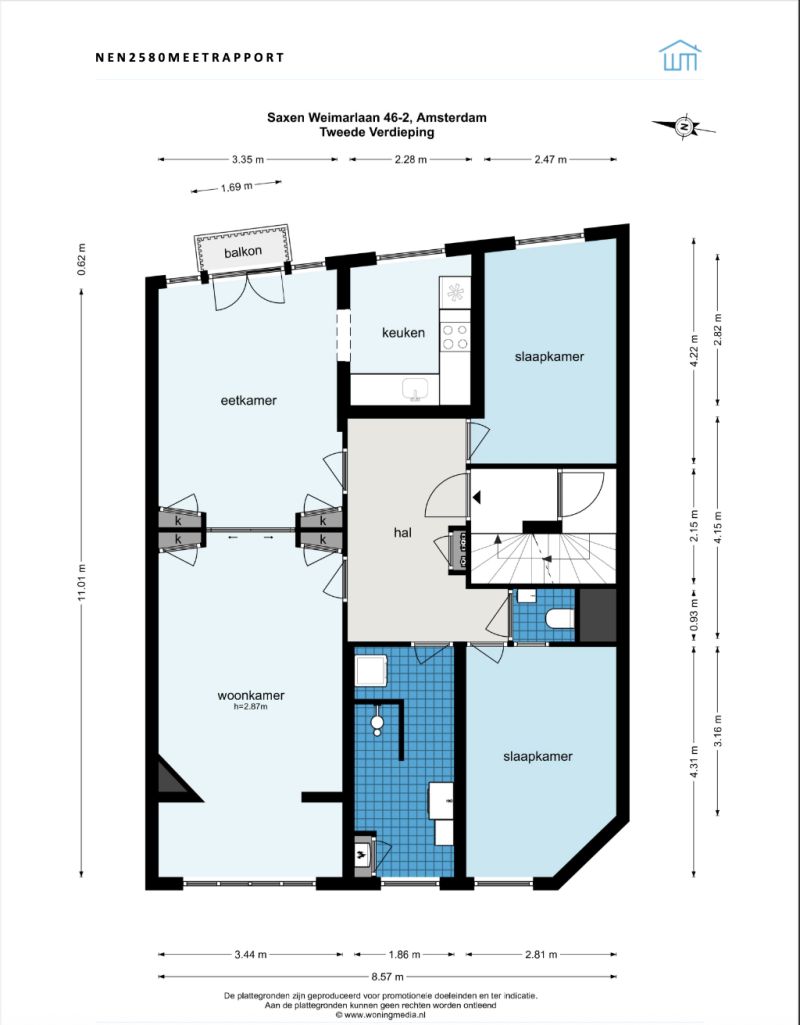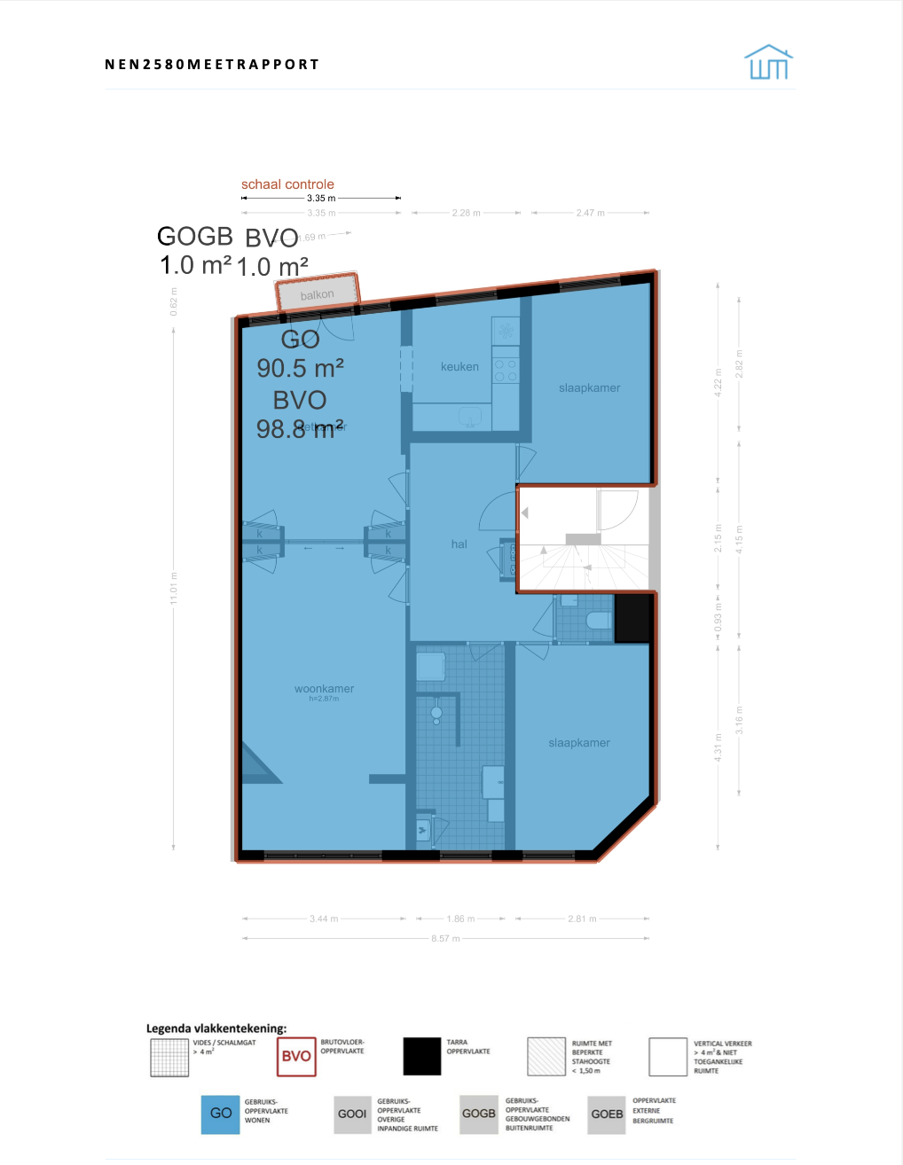 Woonoppervlakte 90,5m2 volgens het NEN2580 meetrapport