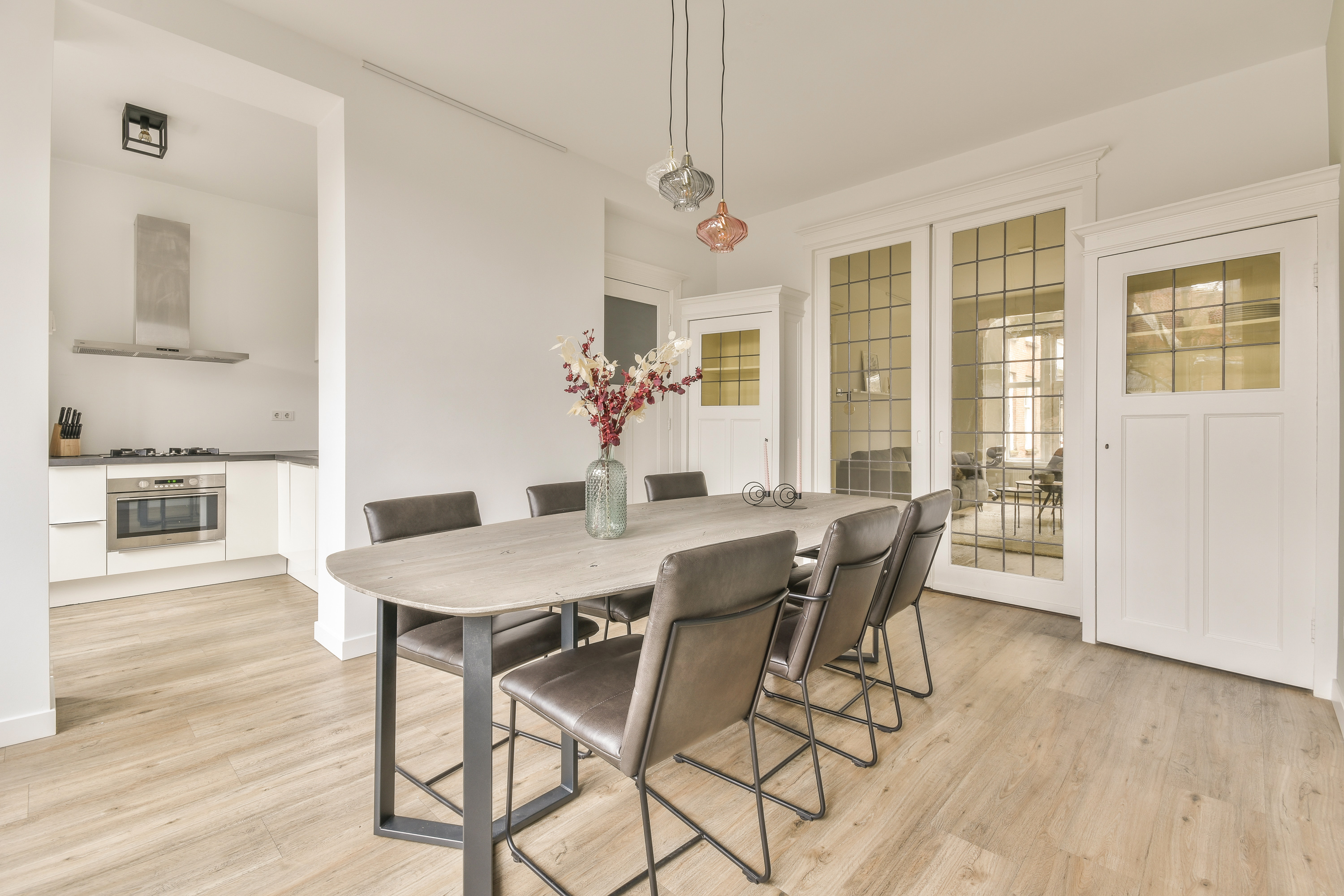 De riante woonkamer ademt sfeer en elegantie, mede dankzij de prachtige en-suite deuren met glas-in-loodramen. De moderne keuken is strak vormgegeven en uitgerust met diverse inbouwapparatuur, waaronder een ijskast, vriezer, 4-pits gasfornuis, afzuigkap en afwasmachine.