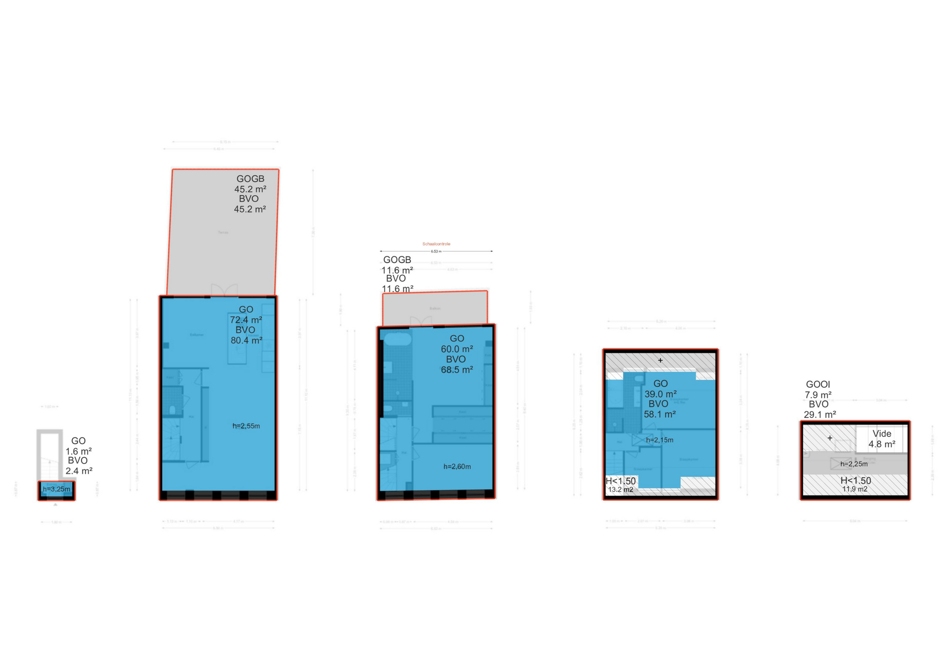 Vliering van 7,9 m2, bruto vloeroppervlakte is echter 29,1 m2!