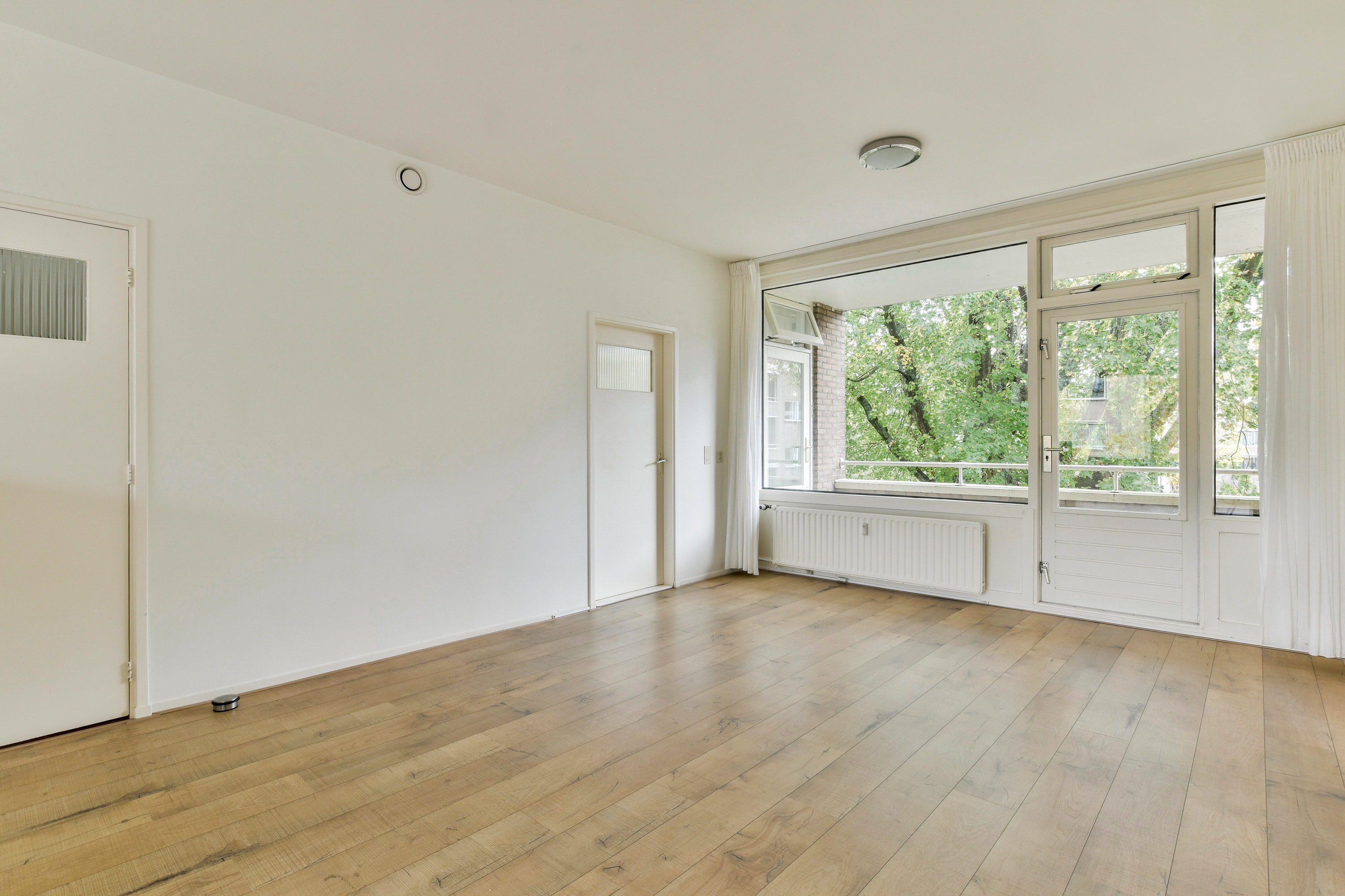 Well laid-out 3-room apartment of 81m² on the second floor of an apartment complex with an elevator, in the green Buitenveldert neighborhood. The apartment features a spacious, light-filled living room with an open-plan kitchen overlooking the greenery, two well-sized bedrooms, two balconies, and a storage room on the ground floor.