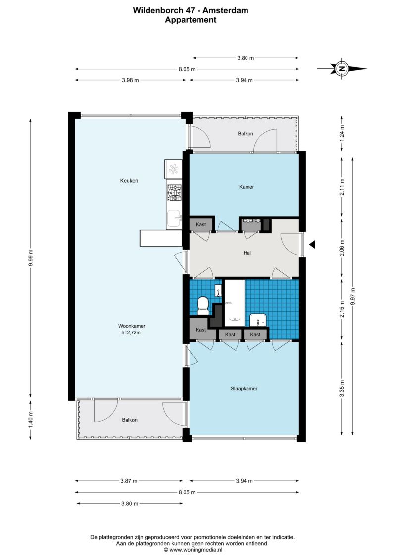 - Goed ingedeeld 3-kamer appartement van 80,5 m2