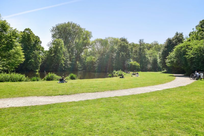 Via het verzorgde gemeenschappelijke trappenhuis bereik je op de tweede verdieping de entree van dit fijne appartement. Vanuit de ruime, lichte gang heb je toegang tot alle vertrekken. De kamer en suite heeft aan de voorzijde een gezellige woonkamer met een houtkachel en openslaande deuren naar een balkon. Aan de achterzijde bevindt zich de eetkamer met open keuken, voorzien van een ijskast, 4-pits gasfornuis met Bora-afzuiging, oven, spoelbak en afwasmachine. Vanuit de eetkamer heb je een heerlijk balkon met vrij uitzicht over het Vondelpark. Kenmerkende details zoals de en-suite kasten, houtkachel, twee schouwen, hoge plafonds en ramen met roedeverdeling zorgen samen voor een warme, karaktervolle sfeer.